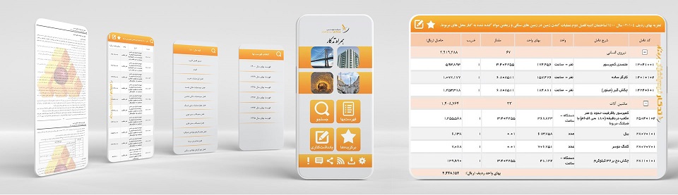 فهرست بهای پایه سال 1400 و نرخ عوامل موثر در فهرست بها سال 1400 سازمان برنامه و بودجه در اپلیکیشن